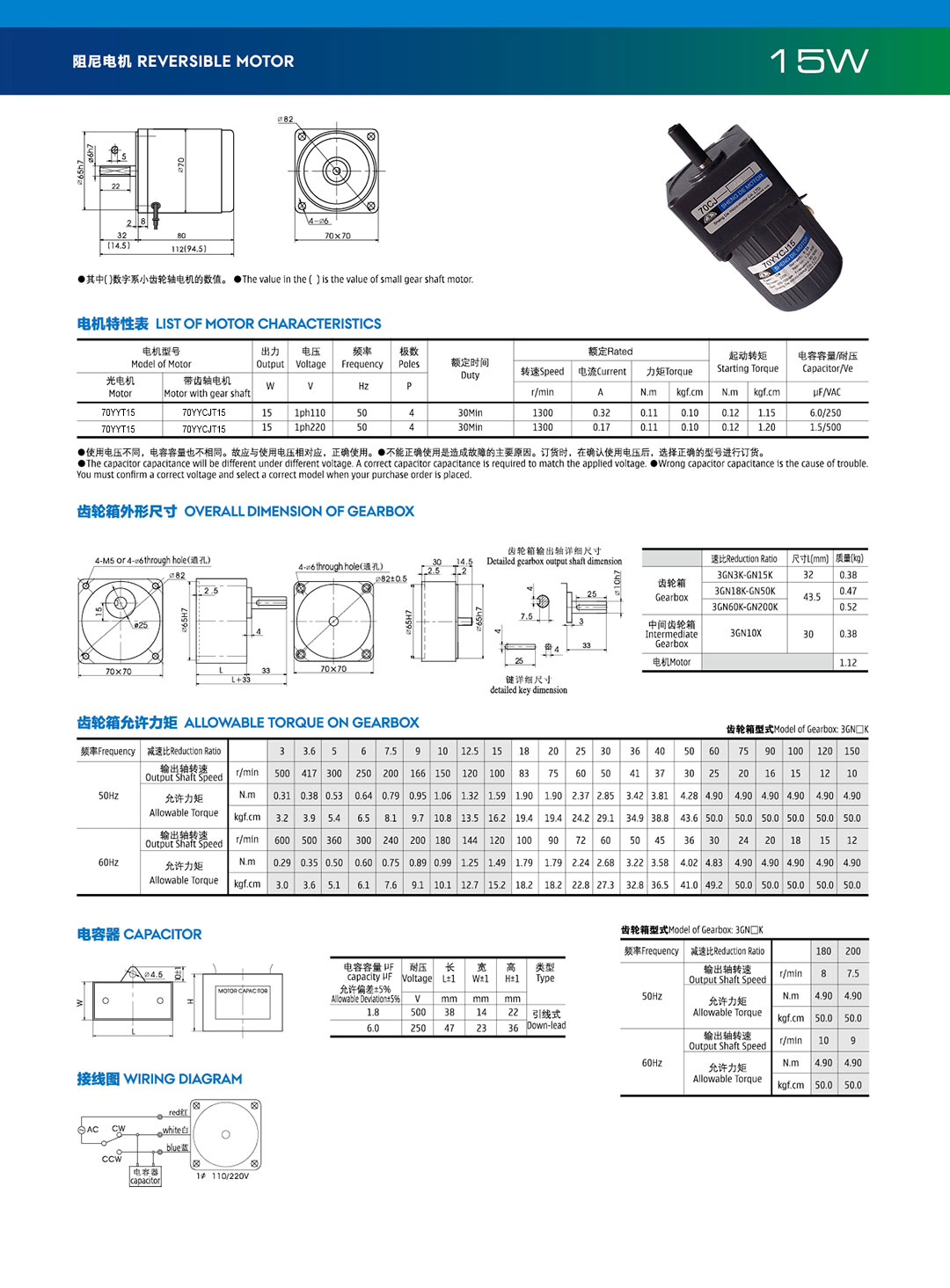 齿轮电机型号:70YYT15