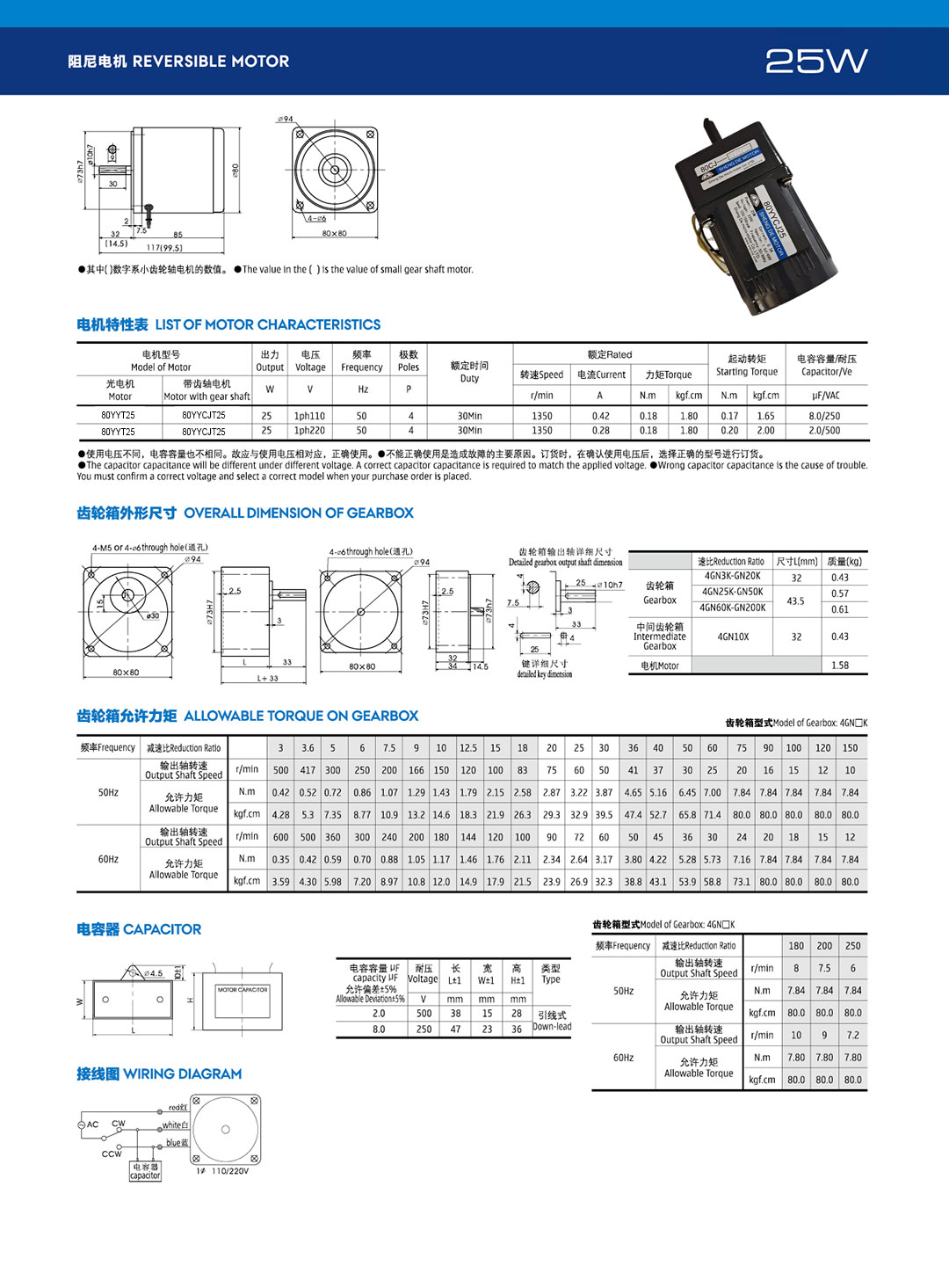 齿轮电机型号:80YYT25