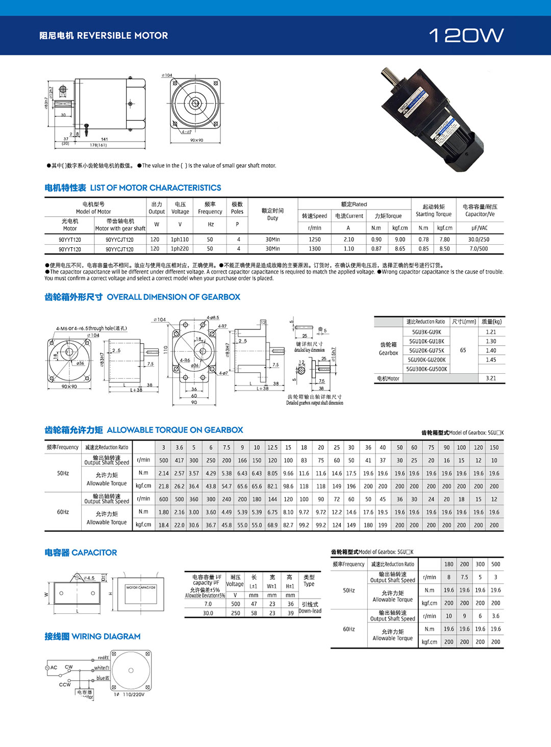 齿轮电机型号:90YYT120