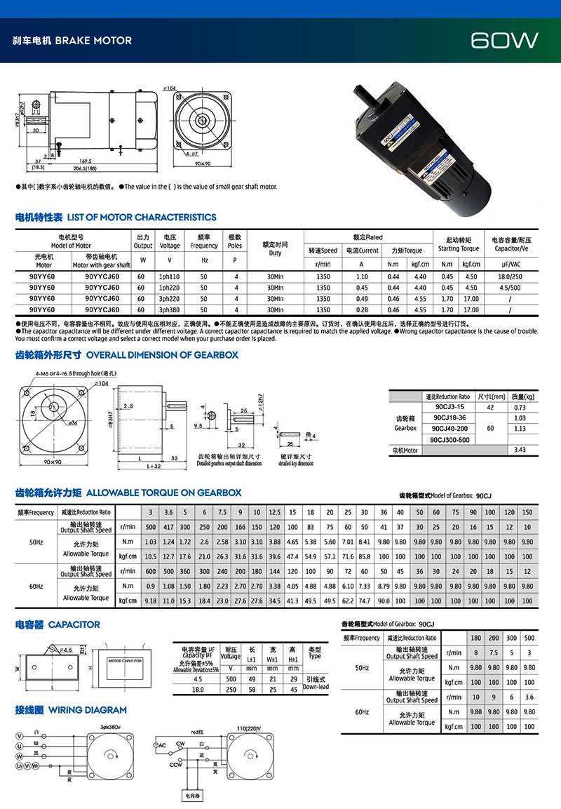 齿轮电机型号:90YY60