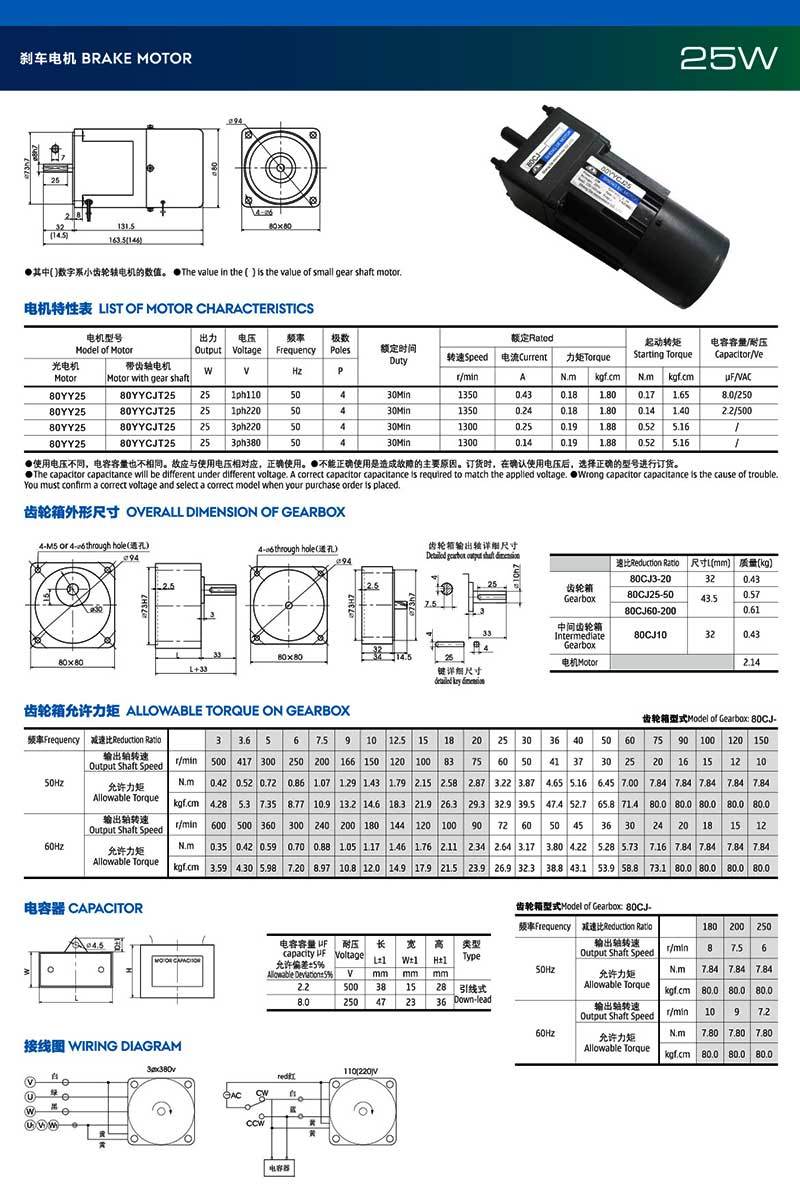 齿轮电机型号:80YY25